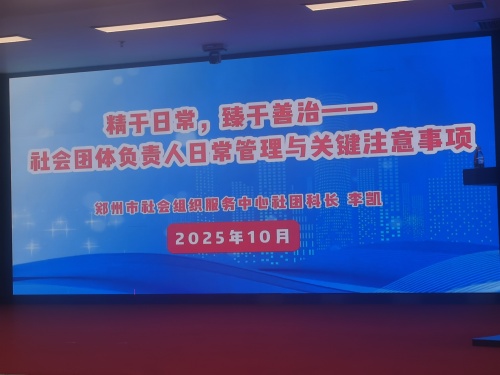 培训中,郑州社会组织服务中心社团科长李凯作了题为《精于日常,臻于善治---社会团体负责人的日常管理与关键注意事项》的专题授课。李科长从日常管理实践出发,详细剖析了社会团体在法人治理、章程执行、活动开展、会员服务、财务制度、信息公开等方面应注意的具体事项和潜在风险,其讲解内容翔实,重点突出,具有很强的针对性和实操性,为与会人员提供了宝贵的工作指引和经验借鉴。