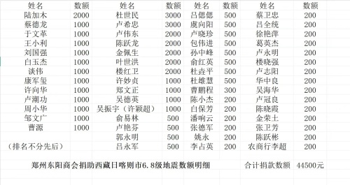在大家的共同努力下,仅仅一天的时间,捐款数额就达到了四万多元。这四万多元善款,每一分每一毫都凝聚着郑州东阳商会成员们的深情厚谊,承载着他们对灾区人民的美好祝愿。